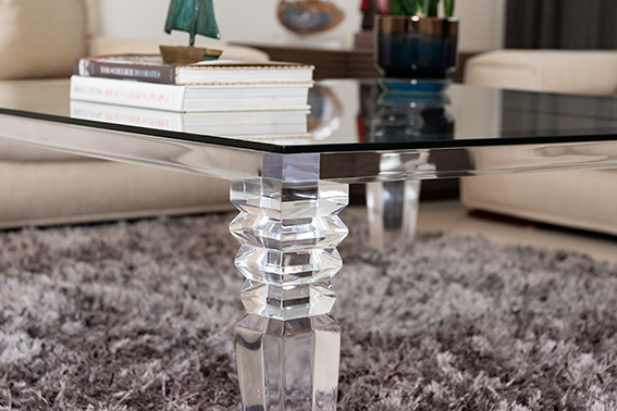 - Iluminación. El acrílico casi siempre es transparente, lo que ayuda en generar un espacio de luz que armoniza las piezas donde se encuentra, dándole forma y fondo a tu decoración.